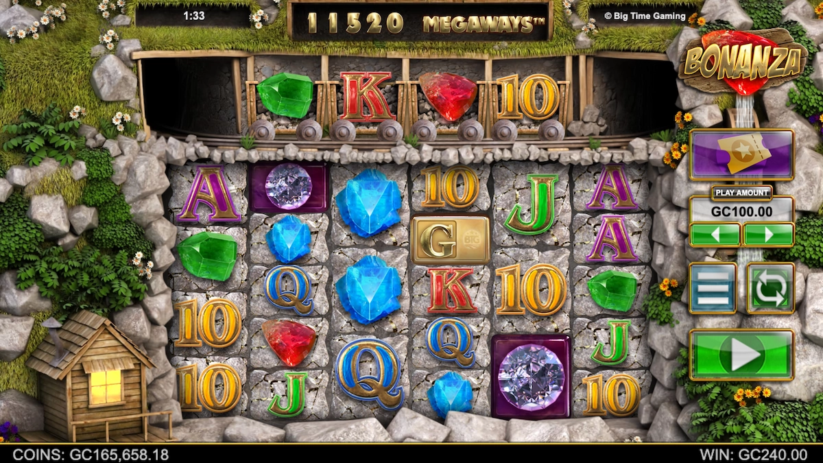 Go prospecting in the gold mine with the Bonanza slot. This slot features the incredible Megaways system, delivering up to 117,649 ways to win on every single spin! This game is constantly active thanks to cascading symbols, where every win explodes and new symbols drop in for chain reactions, all boosted by mining carts carrying extra symbols above the reels. The free spins feature includes an unlimited win multiplier that increases with every cascade.