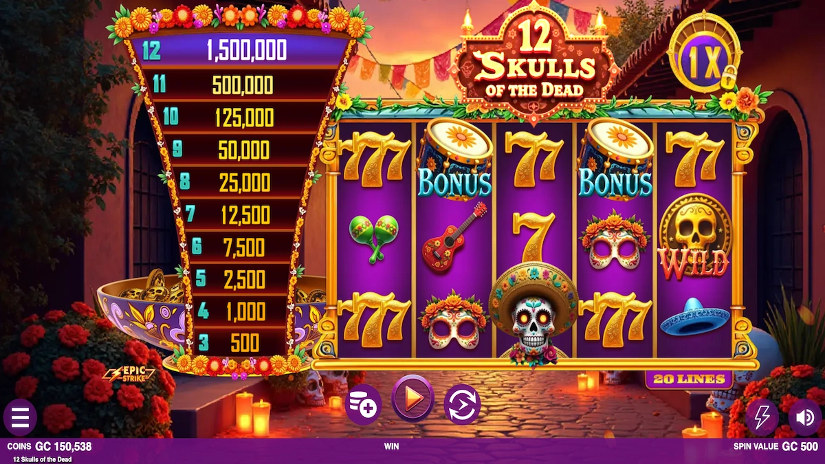 This is a true Day of the Dead celebration! The 12 Skulls of the Dead slot delivers a feature fiesta, starting with ornate skulls that can bring rewards up to 3,000x your play amount right away. With the free spins feature, you collect symbols to race through 8 levels, expanding the game board, resetting your spins, and unlocking bigger rewards. If you want to skip the procession, an available option lets you jump straight to the bonus action!
