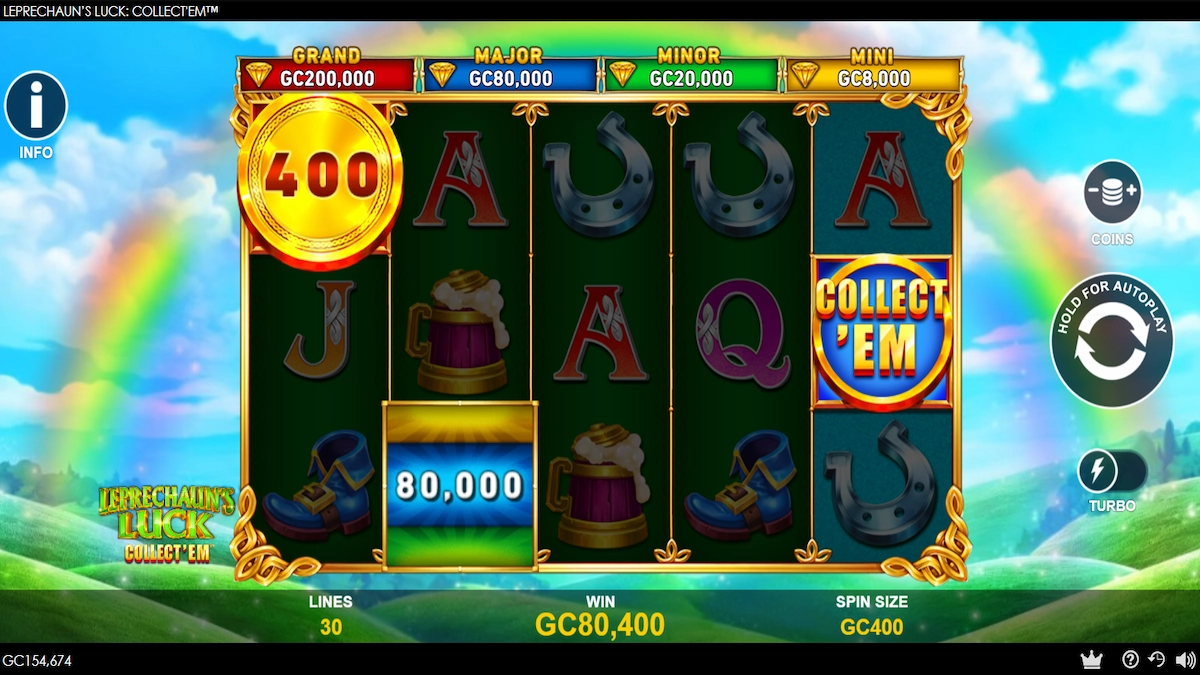 Leprechaun’s Luck Collect ‘Em is all about chasing golden coins as they unlock prizes, free spins, and jackpots. With sparkling rainbows, shamrocks, and cheerful music, it’s a free leprechaun slot game that makes every spin feel like a walk to the rainbow’s end.