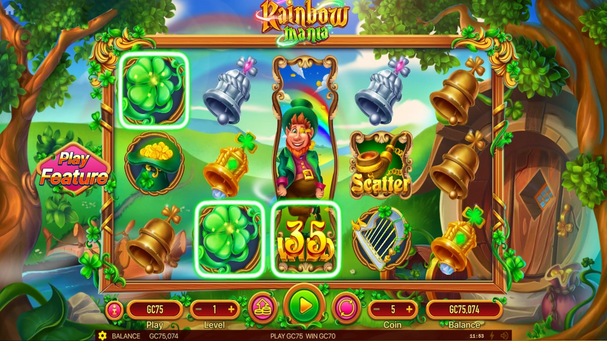 Rainbow Mania sparkles with colorful magic, offering up to 133 free spins in a single round. Expanding leprechaun wilds and pots of gold bonuses keep the fun flowing, making this free leprechaun slot game a dazzling choice for players chasing rainbow rewards.
