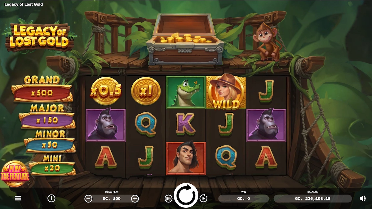 Go deep into the wild African jungle in search of epic prizes with ELA Gaming’s Legacy of Lost Gold, a medium volatility slot where you can win up to 5,000x your spin amount! As you spin the five reels of this rustic, vine-framed slot, you’ll feel like a true adventurer collecting valuable coin symbols.