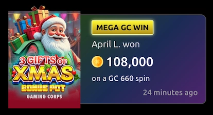 The holiday cheer is in full swing at McLuck social casino, and April L. just found a serious prize under the tree. While playing the festive 3 Gifts of Xmas Bonus Pot by Gaming Corps, one of our favorite Christmas slot games, she landed a spectacular Mega GC Win.