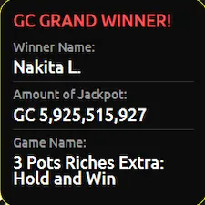 The celebration began when Nakita L. scored a massive GC 5,925,515,927 while playing the 3 Pots Riches Extra: Hold and Win slot. Thanks to the game’s thrilling Hold and Win feature, Nakita’s reels lined up for one of the biggest jackpot wins we’ve seen recently.