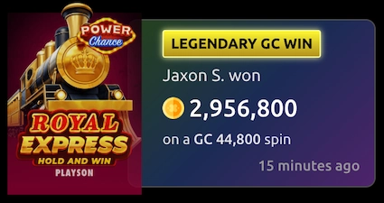 The express train to riches pulled into McLuck social casino with Jaxon S. securing a spectacular win on Playson’s Royal Express: Hold and Win Power Chance slot. With a 44,800 GC spin, Jaxon landed a Legendary GC win of 2,956,800 GC.