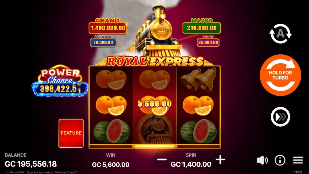 All aboard the Golden Journey! Royal Express: Hold and Win Power Chance is a classic 3-reel slot that puts luxury and excitement on the fast track across 5 winlines and rewards up to 9,585x. There is the fan-favorite hold and win bonus game, which includes fixed jackpots and features the dynamic Royal Express multipliers to boost your takings.